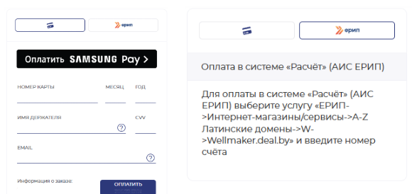 1. Онлайн-оплата картой (WebPay) с возможностью оплаты через ЕРИП