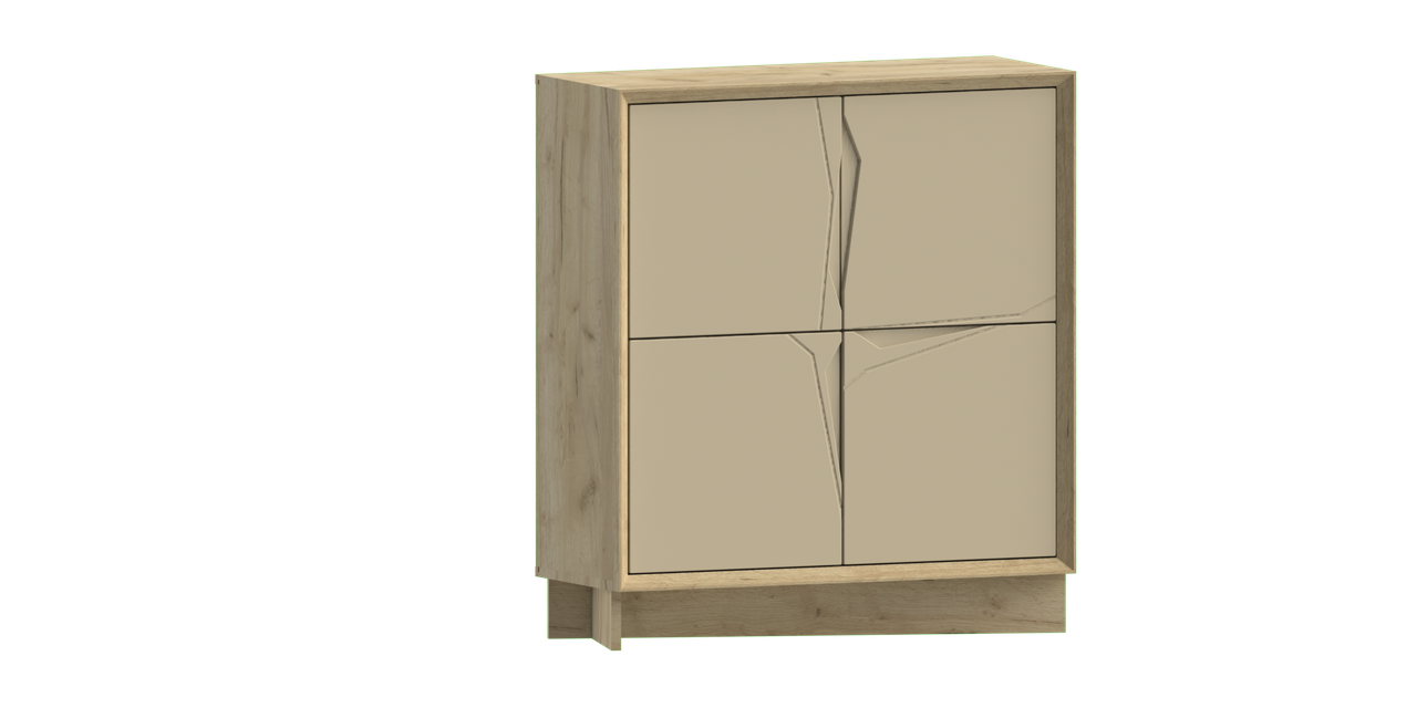 Лаконичный комод в стиле модерн, раскрывающий свою глубину в деталях. Четыре дверцы с асимметричным фрезерованным рисунком и soft-touch покрытием, изящные ножки и сдержанная цветовая гамма. Безупречное сочетание дизайна, функциональности и тактильного комфорта для утонченного интерьера гостиной или спальни.